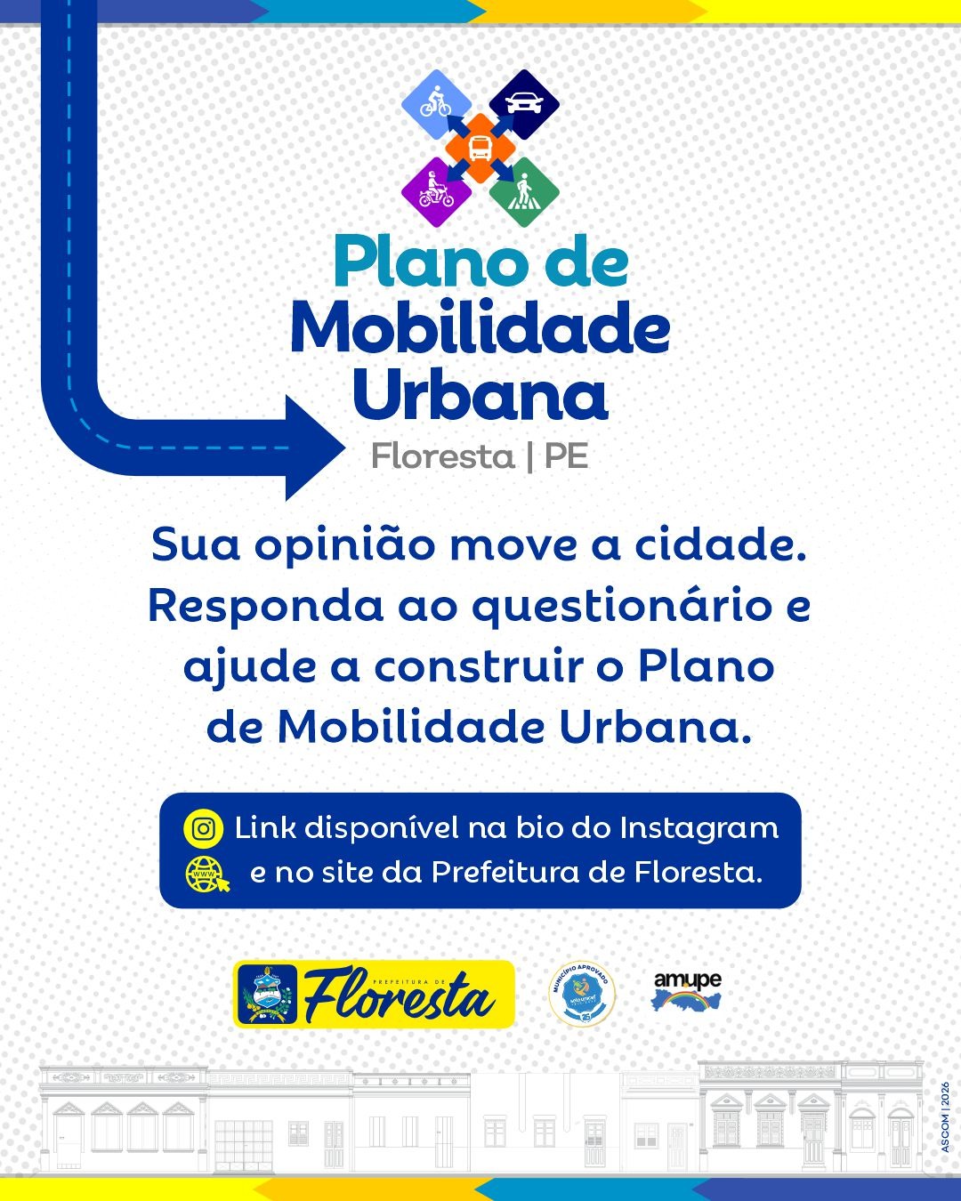 A Prefeitura Municipal de Floresta está elaborando o Plano de Mobilidade Urbana do município e convida a população a participar desse processo. A contribuição dos moradores é fundamental para identificar desafios e apontar soluções que ajudem a melhorar o trânsito, o transporte e a circulação na cidade. Para isso, foi disponibilizado um questionário aberto ao