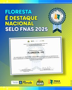 O município de Floresta conquistou o SELO FNAS – Edição 2025, reconhecimento concedido pelo Ministério do Desenvolvimento e Assistência Social, Família e Combate à Fome. A certificação destaca o compromisso da gestão municipal com a qualidade, a transparência e a responsabilidade na execução do financiamento da política pública de assistência social.
