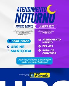 Floresta intensifica cuidados com a saúde mental e prevenção da hanseníase durante o mês de janeiro com atendimentos noturnos nas UBSs
